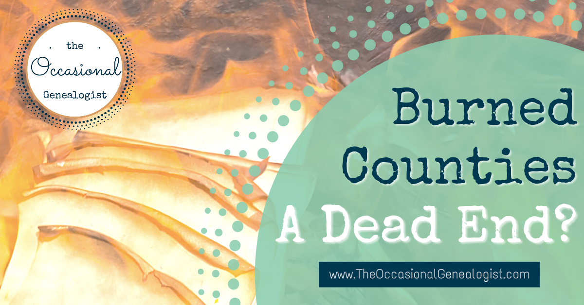 If you aren't aware that there are such things as "burned counties" or if you think that's the end of the road, you need to learn more. Every genealogist has to deal with this. There are techniques to overcome record loss. A quick free source is the FamilySearch Wiki page about "Burned Counties Research."